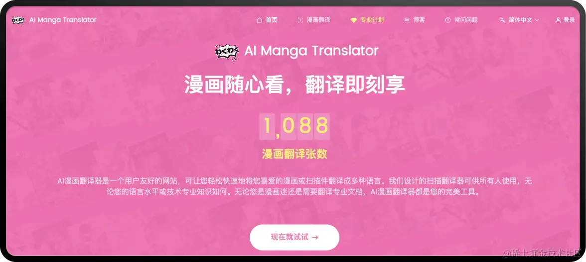 "AI Manga Translator" 是一个在线翻译工具,专门用于翻译漫画、扫描件和图片。用户可以上传自己的图像,是否免费:暂定免费,后续订阅制9.9美元/月