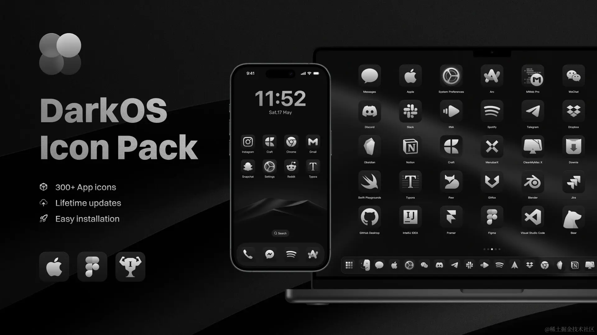 一款专为暗黑模式爱好者精心设计的图标!也是我个人已经用了两年的一套图标,600+图标都矢量重新设计,也设计了对应的十几张壁纸。有兴趣可以查看官网加入候补名单,预计本周正式发布。