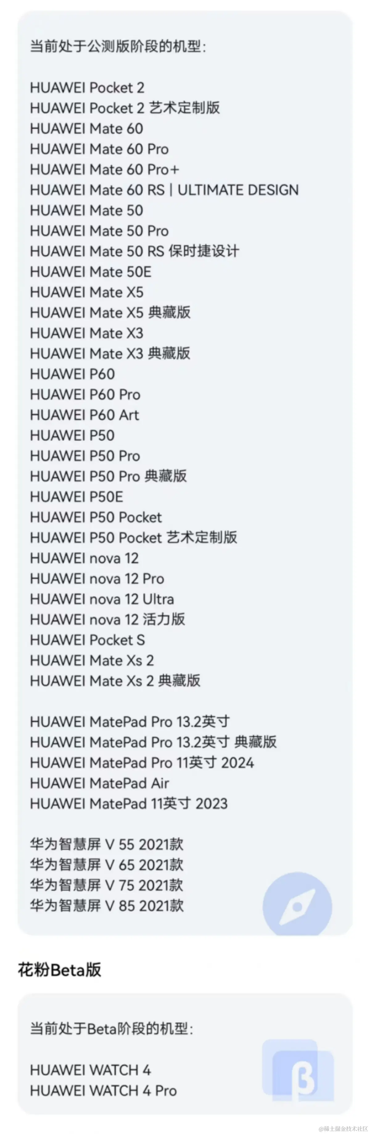 对于我们这些开发者来说,最关注的是设备支持的增多。升级之后鸿蒙4.2支持180余款设备,包括手机、平板、手表、耳机、智慧屏等。更广泛的设备支持意味着可以覆盖的用户也更多了。以下是目前处于公测的机型,给大家做个参考。