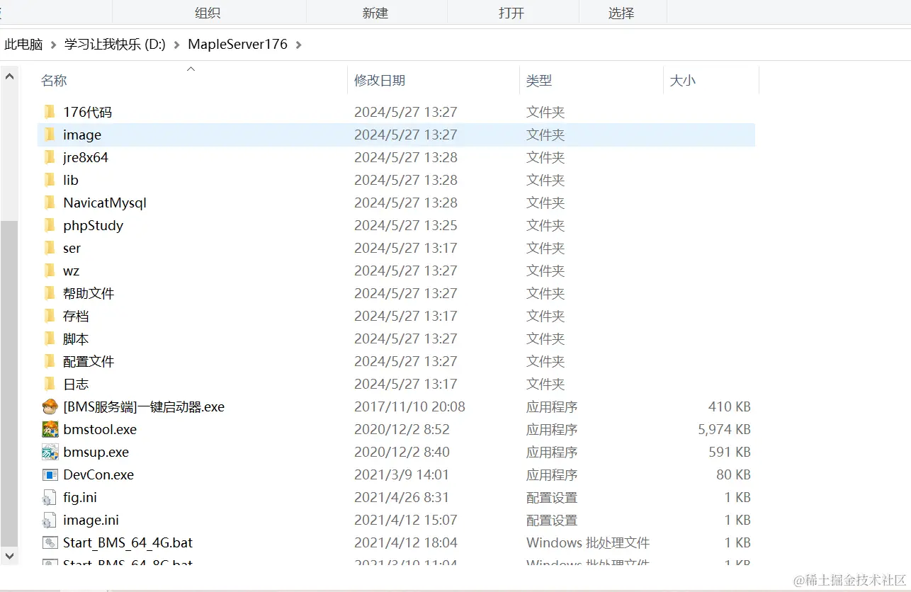 在D盘 新建 MapleServer176文件夹, 将 【必下服务端】MapleServer176 下面的所有文件拷贝到 D:/MapleServer176