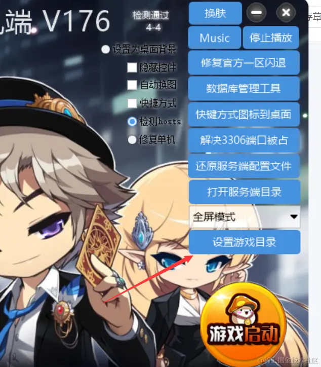 先设置下游戏目录 ,因为前面你把客户端装到了 D:\冒险岛online ,我们就选到这个目录