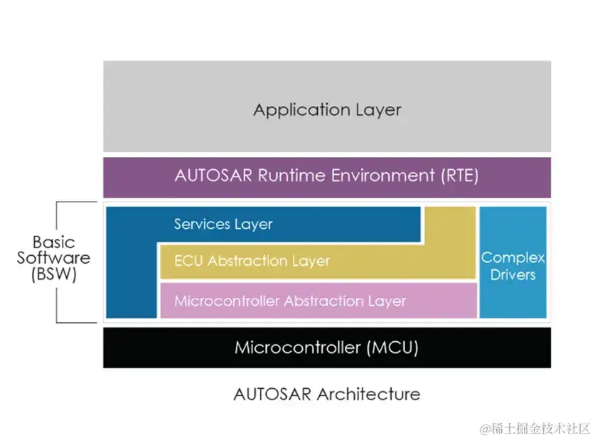 基础软件(BSW)堆栈:标准化基础软件模块的开发构成了 AUTOSAR 架构的核心。这些模块提供了通信堆栈、诊断和操作系统服务等基本功能,确保了不同汽车平台之间的一致性。