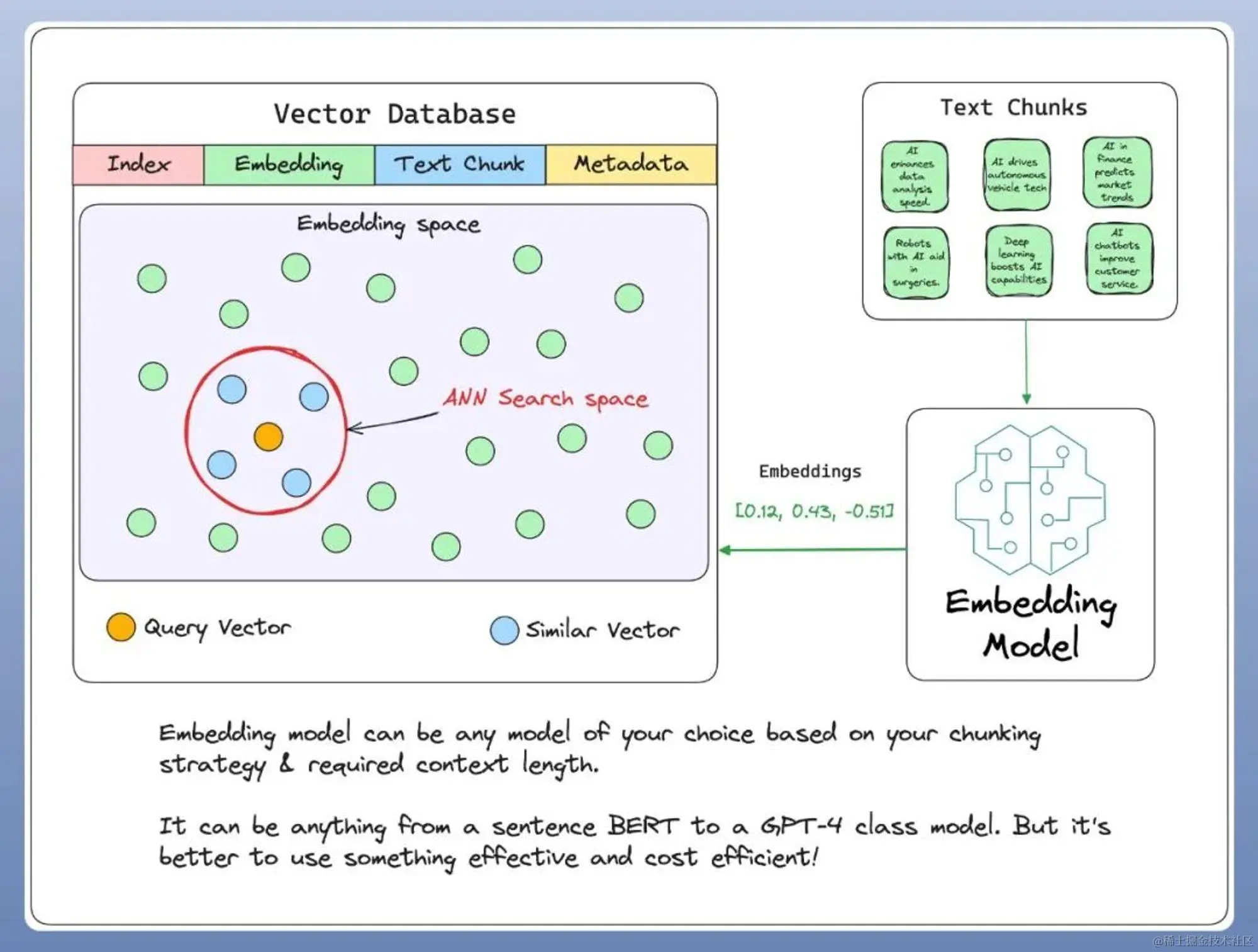 查询转换为嵌入向量,用于从向量数据库检索相关上下文知识!