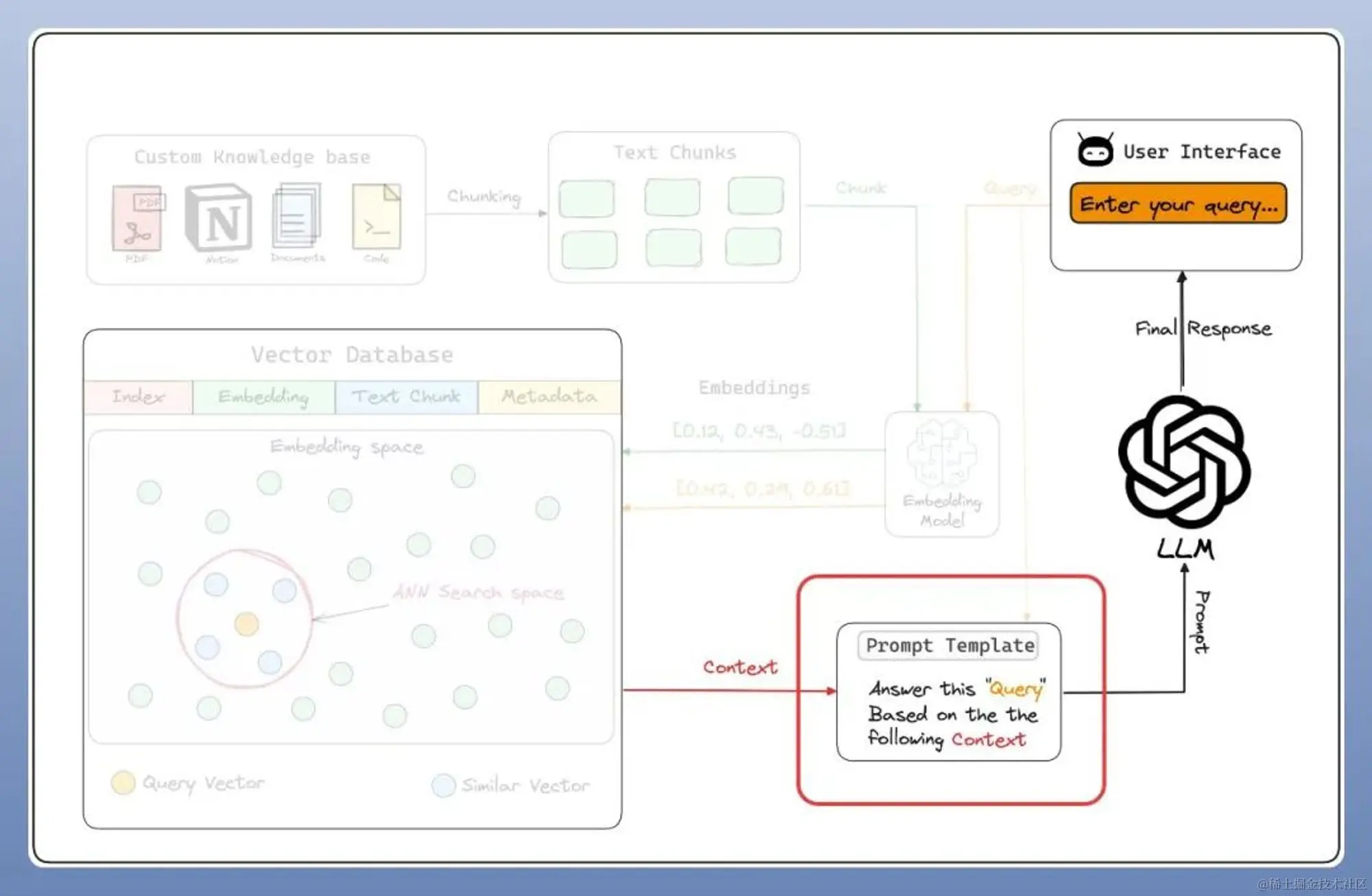 为 RAG 系统生成合适提示词的过程,可以是用户查询和自定义知识库的组合。
