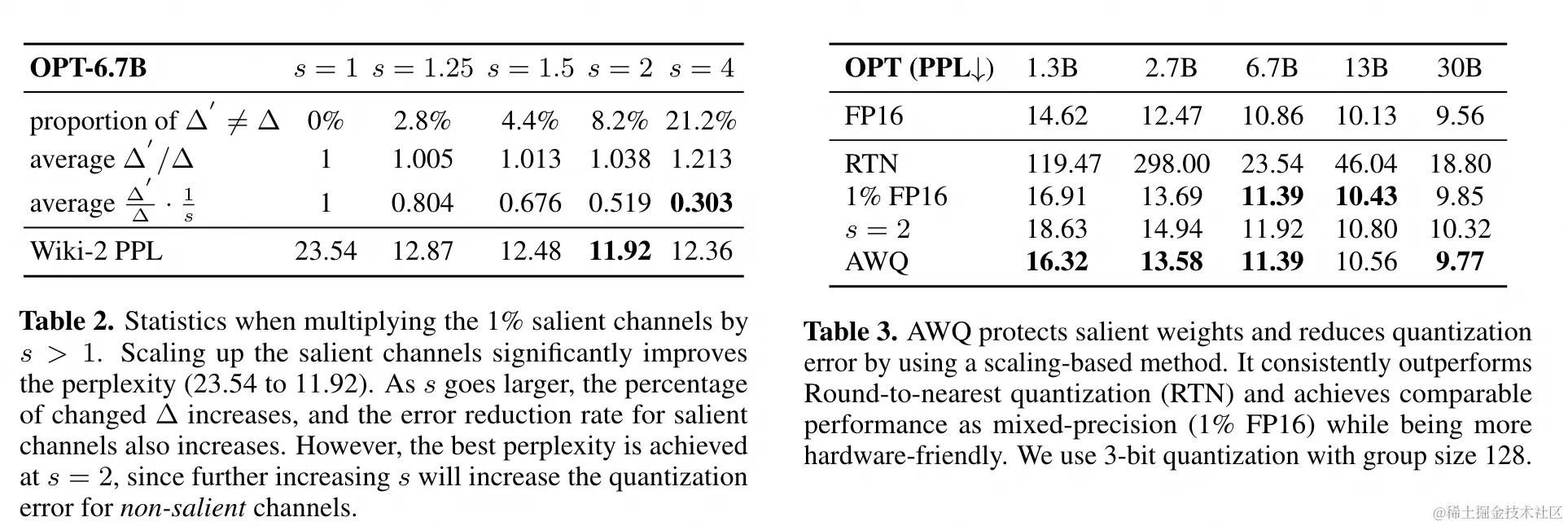 另外 AWQ 虽然要对激活乘以一个 scale tensor,但是这个 tensor 通常可以合并到前面的 RMS NORM 上面,使得这个操作不会引入额外计算。