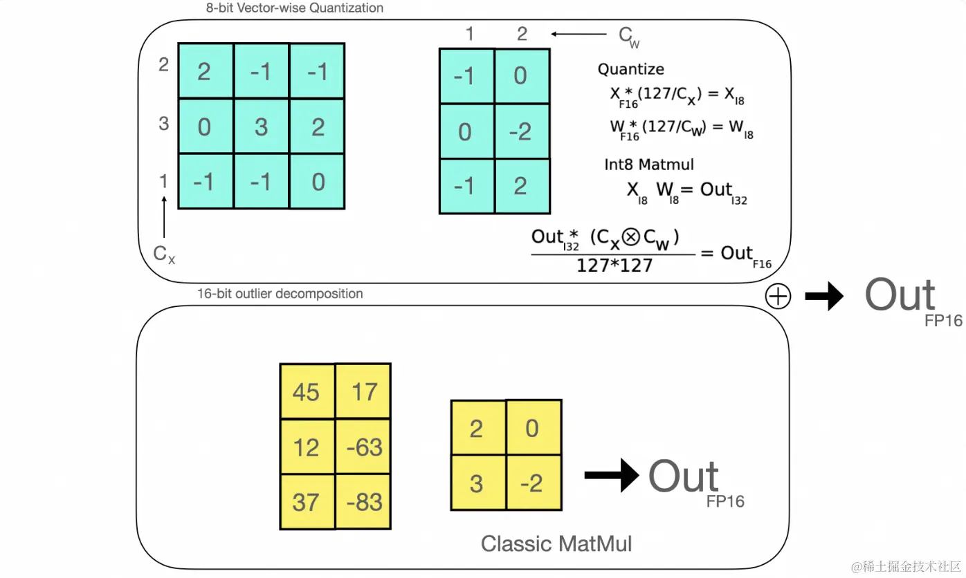 - 对非离群值的结果反量化,将两部分加起来得到最终结果