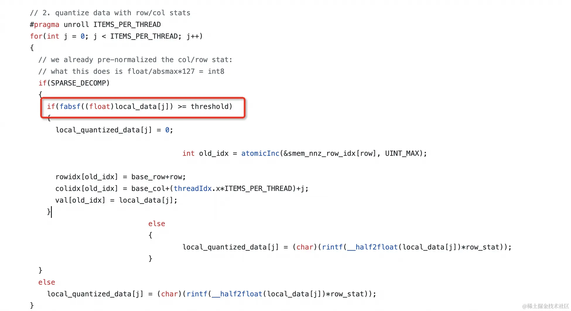 可以看到针对离群点进行了阈值判断并有选择地量化。如果大于离群阈值则直接置0。