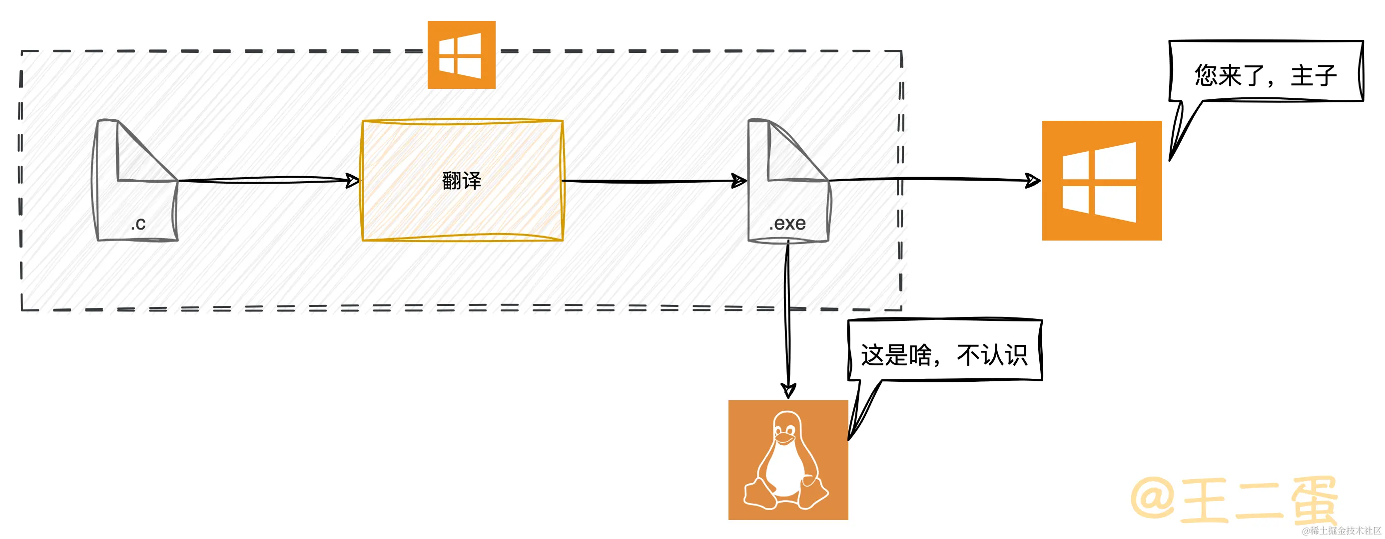 所以,在一个平台上编写的程序要在其他平台上运行,就需要重新编译,甚至重写。否则就会出现下图现象。