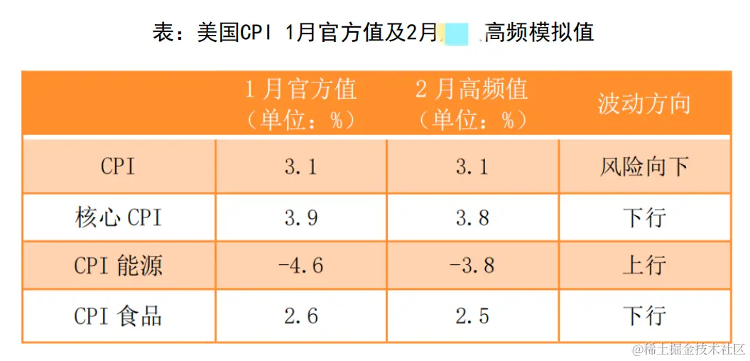 然而,如果进行人工检索,我们将在报告中获得如下表格,标明了CPI食品的1月官方值。