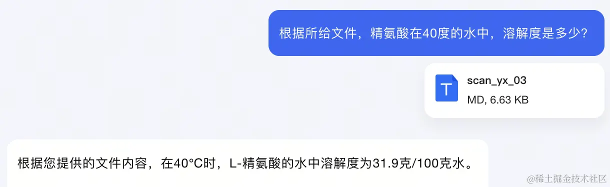 大模型表示:文档中并没有直接提供精氨酸在40℃时的具体溶解度数值。同时,它补充道:如果文档中确实包含了40℃的溶解度数据,但由于文档不完整或扫描不清晰导致无法读取,请提供更详细的信息或完整的文档,以便进行准确回答。