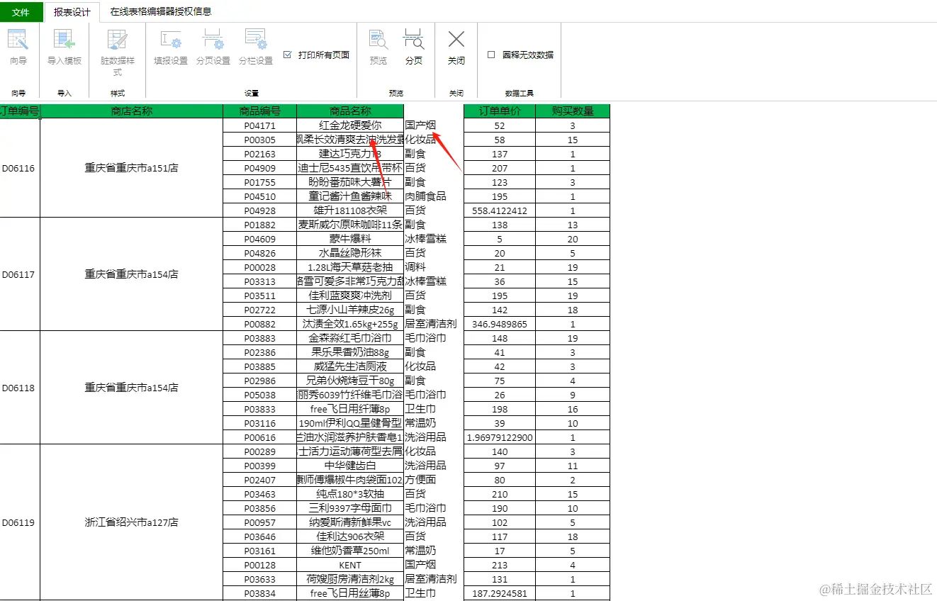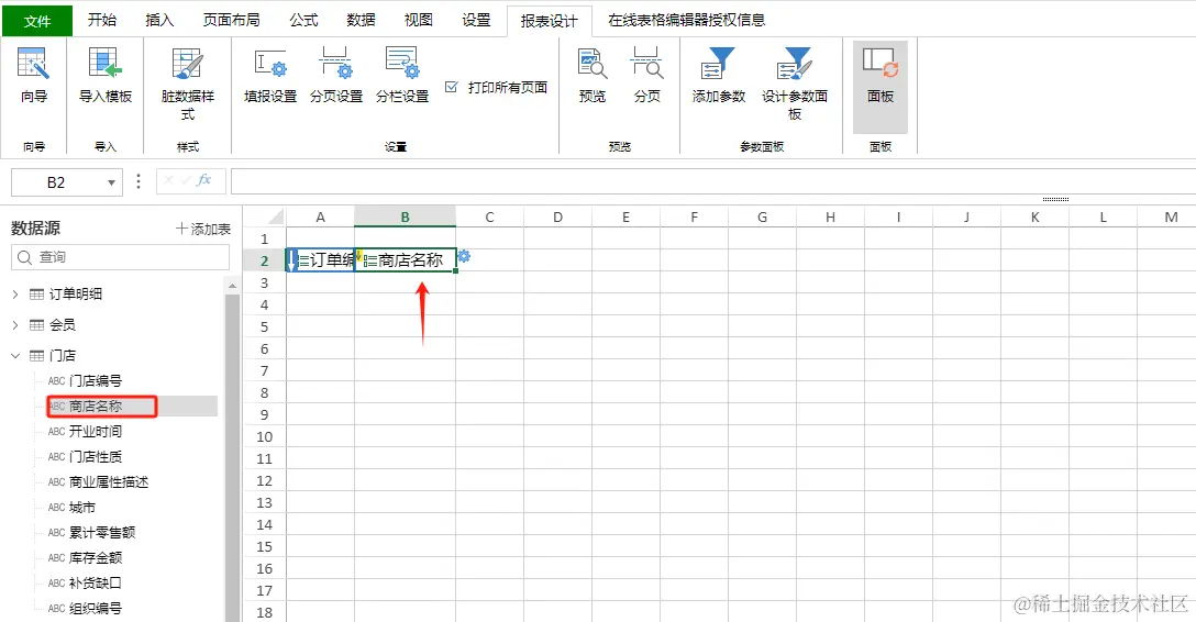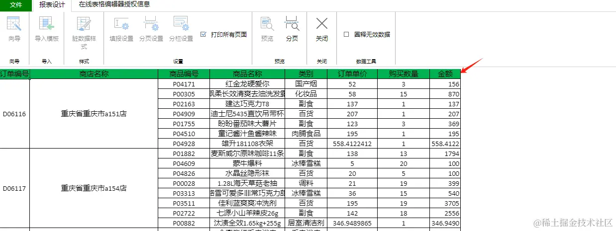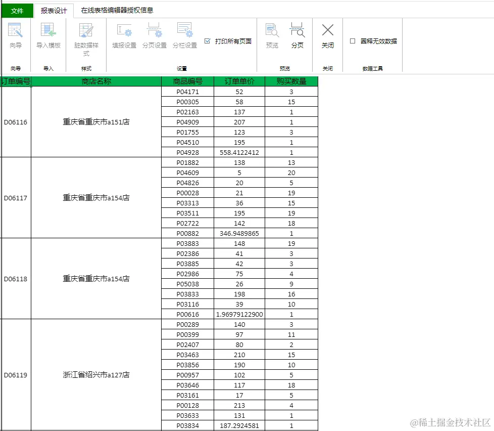 此时点击“预览”,发现“订单编号”与“商店名称”不存在对应关系,