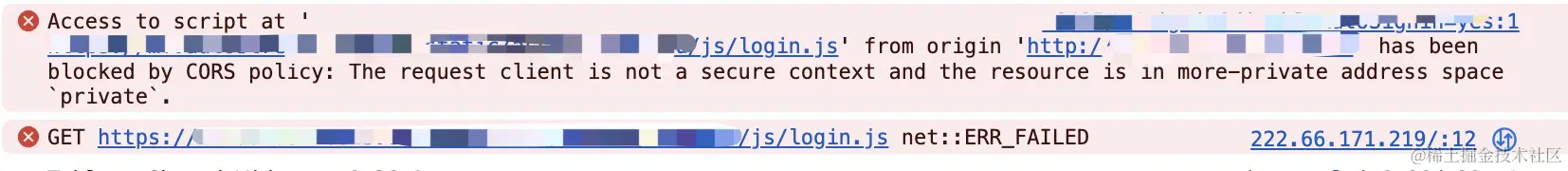 即公网地址访问私域资源浏览器拦截报跨域问题。