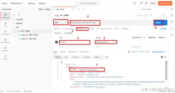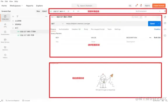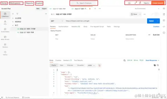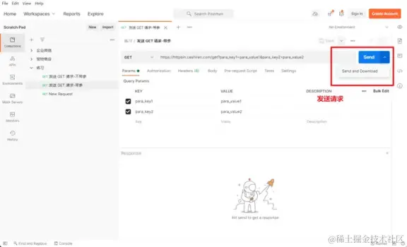 下面使用 Postman 发送一次 GET 请求。使用学社提供的官方演练地址进行演示