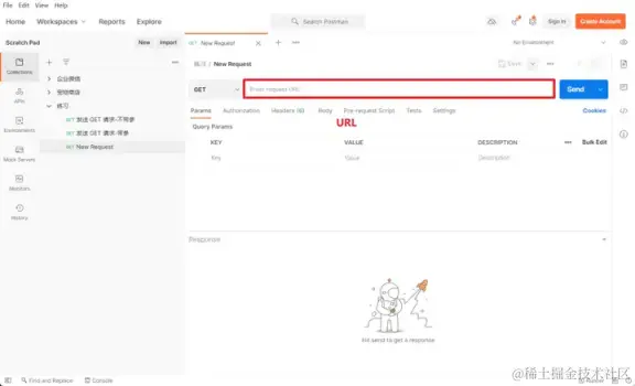 - URL & Params:URL 可以输入 request 的地址,Params 是对应的 URL 的参数。在 Params 中输入参数,会自动同步到 URL。同理,URL 里面输入带有参数的地址,也会自动同步参数到 Params。