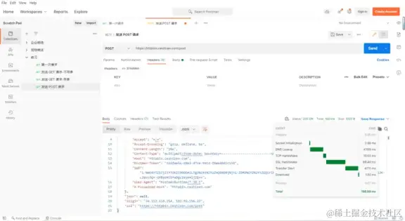 Postman 将响应大小分解为 body 和 headers。响应大小是近似值。