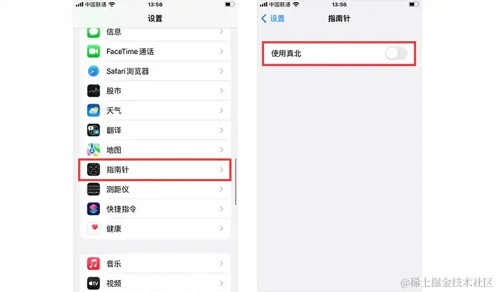 步骤1:iphone怎么测海拔高度?我们先在**【设置】界面找到并点击【指南针】**。