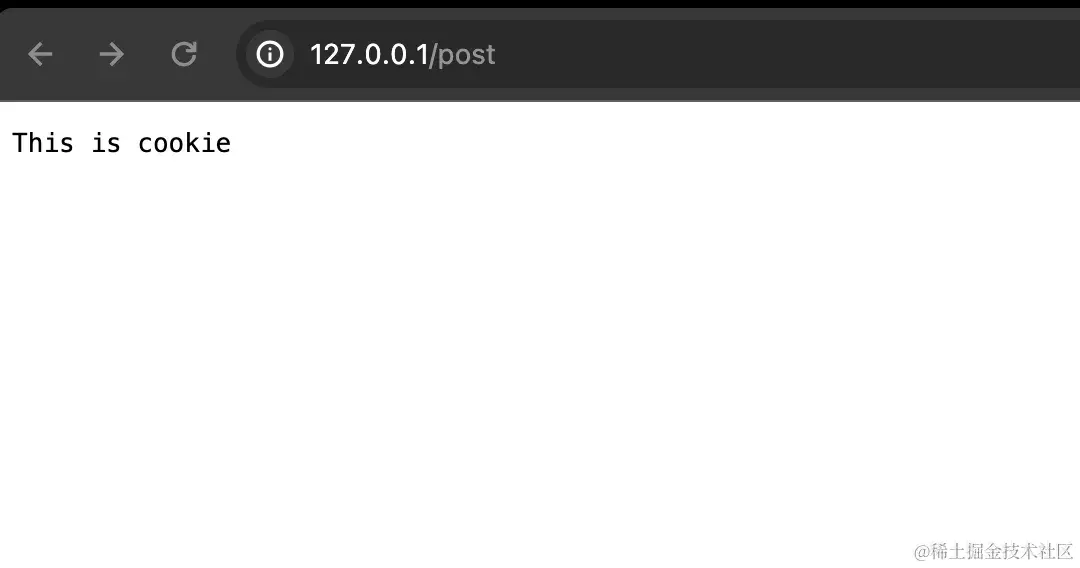 在浏览器上访问 http://127.0.0.1/post 后 ,第一次与服务端请求因没有cookie信息,显示我们预期的字符串。