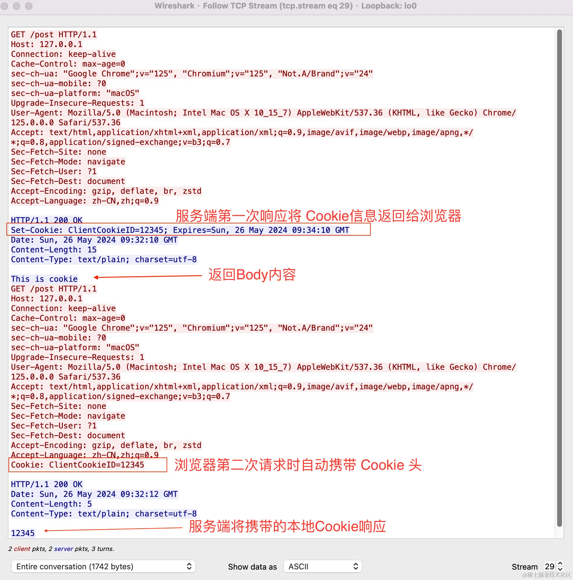 最后,通过抓包我们看下两次HTTP请求原始报文