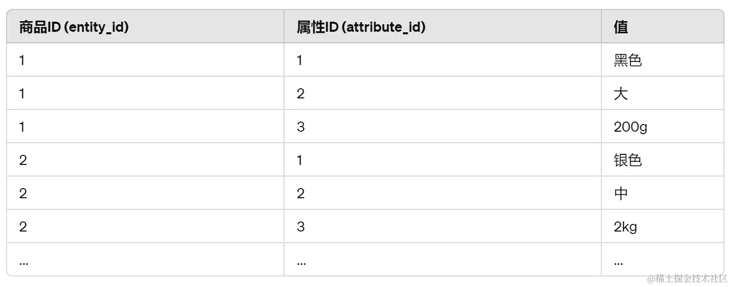 这样设计的好处在于,你可以灵活地添加新的属性,而无需修改数据库结构。然而,EAV模型也有一些缺点,例如查询可能会更加复杂,因为需要在值表中进行属性值的连接。