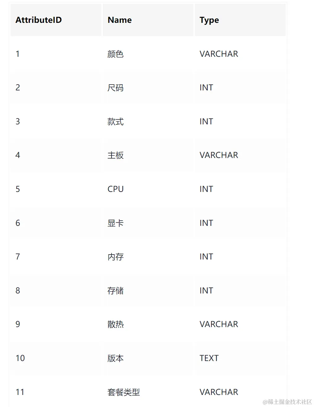 还有一种是采用JSON数据存储方案,对于扩展的数据,可以统一存储在某个JSON里面,这样设计的扩展字段,可以有效屏蔽一些复杂度,并提高弹性化。如可以把 尺码、颜色、款色、主板、CPU、显卡、内存等等都放到 JSON 里。