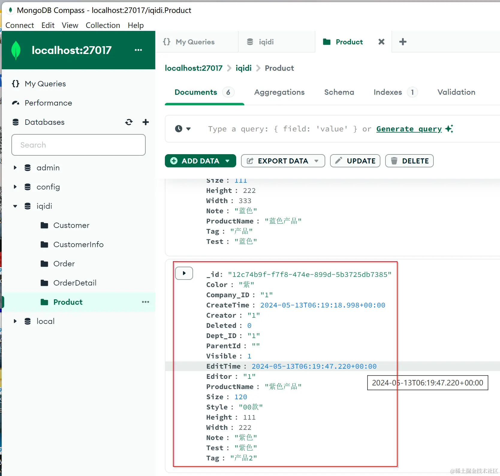 这个表的数据在MongoDB中存储的,如下界面所示。