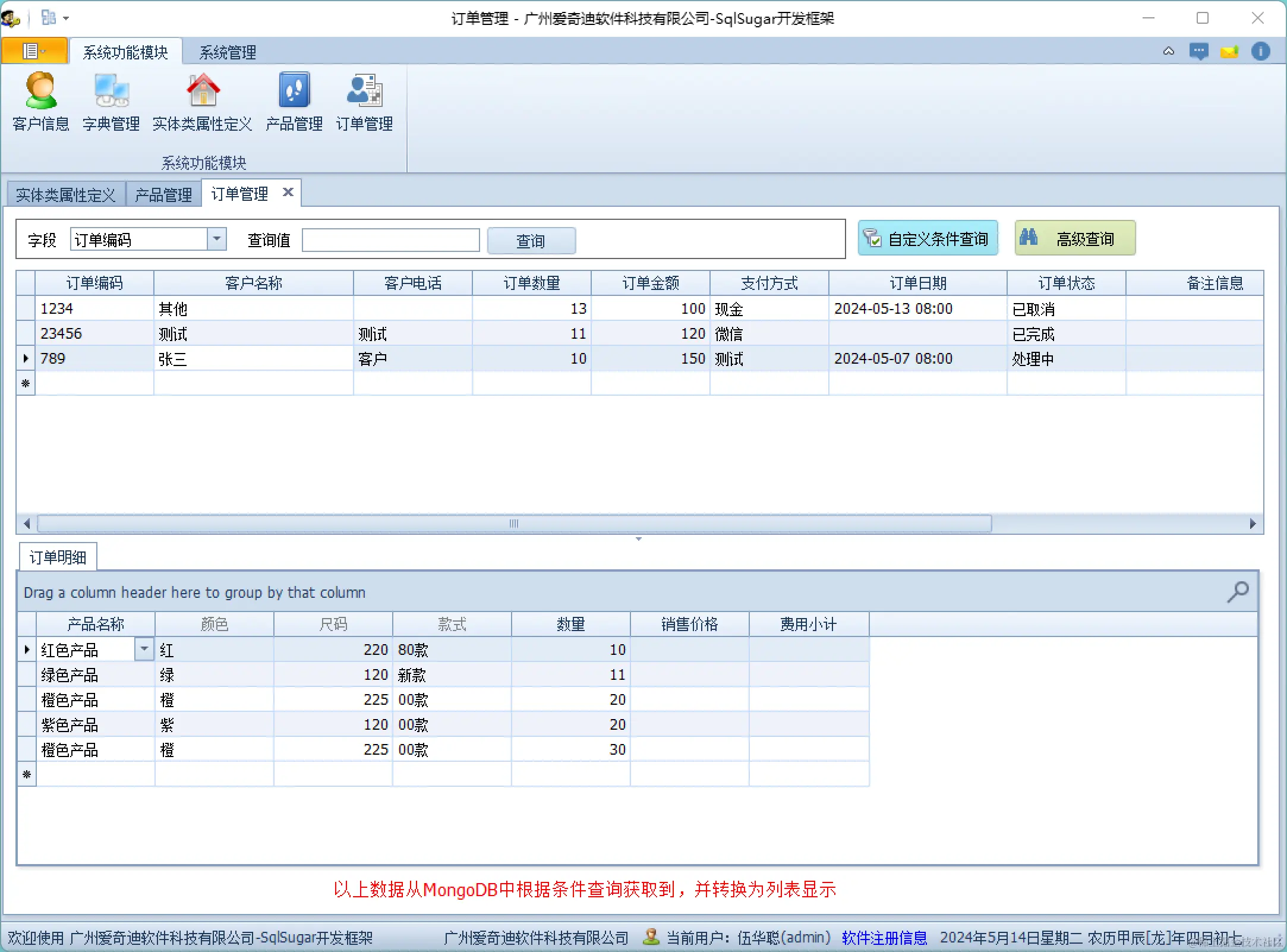 对于有主从表的业务处理,也是同样的处理方式,除了显示主表的信息外,还需要展示明细的记录数据,我们通过整合关系型数据库的EAV表和MongoDB的文档记录显示,就可以很好的展示相关的数据了。