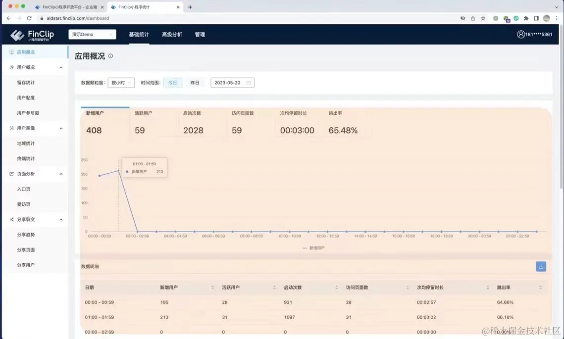 简单了解了一下,从技术上来说,FinClip 采用"服务端埋点"的方式替代了小程序埋点。在服务端建立统一的数据 API,实现数据的集中上报。这样,开发者也省下了小程序埋点点工作量,并且,小程序的加载和使用过程不会受到埋点操作的干扰,可以避免统一影响用户体验的问题。