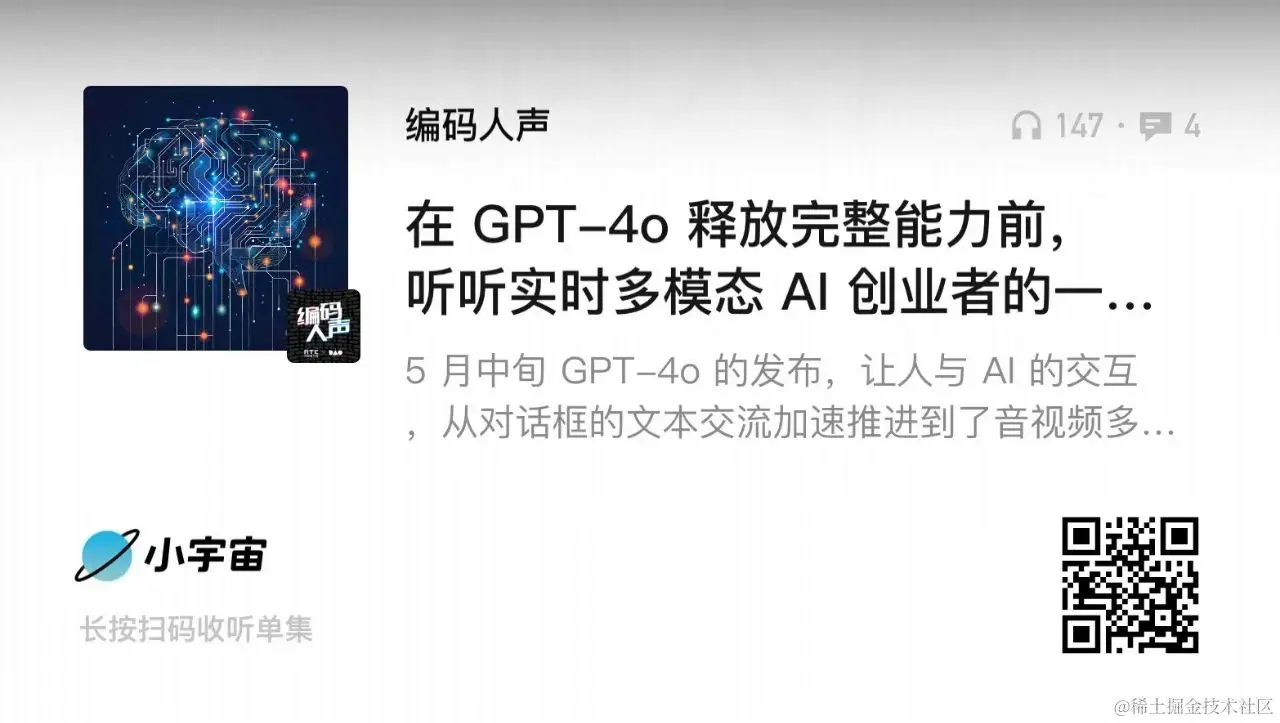 从对话框到音视频,多模态的实时互动 AI 已成趋势。希望本期节目能对你有所启发。