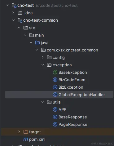 1、在common创建exception子目录,通用异常处理设计的类均放在该目录下: