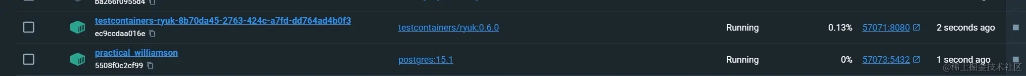- 可以看到当测试运行的时候 TestContainers 会在容器环境内建立多个实例。