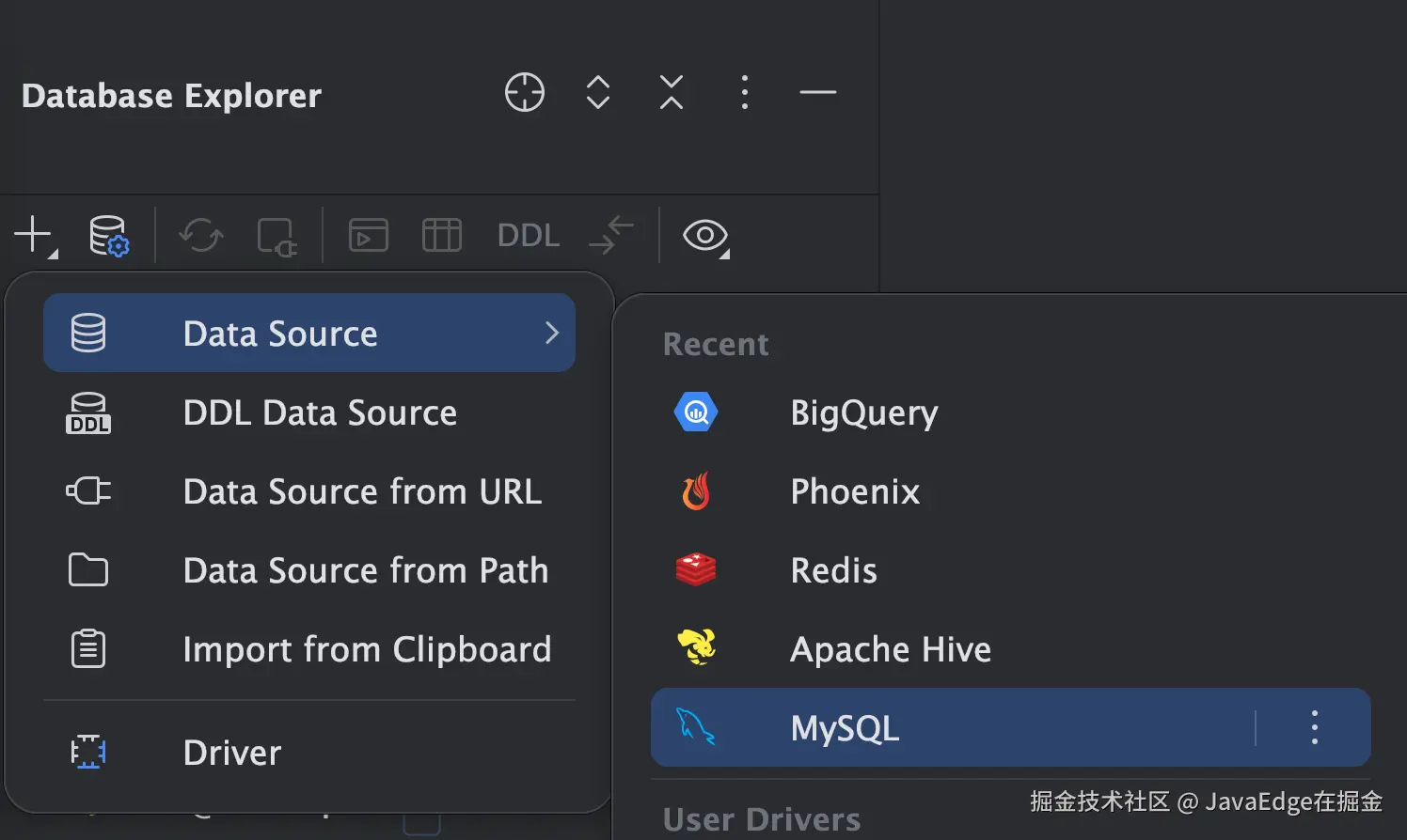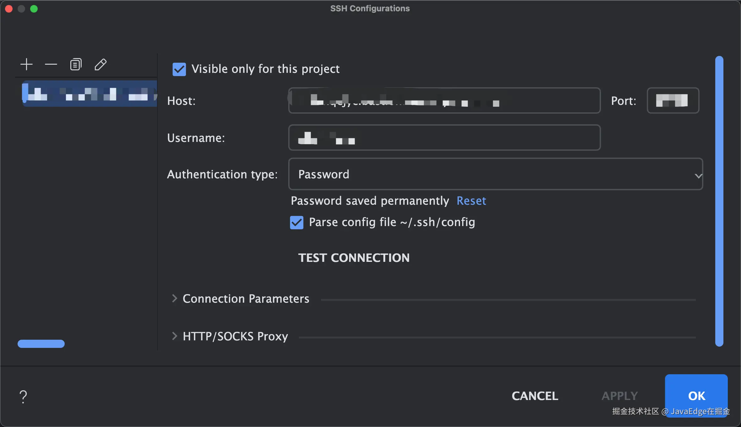 DataGrip使用ssh连接数据库的操作流程 JavaEdge在掘金 2024-05-28 168 阅读1分钟 本文已收录在Github,关注我,紧跟本系列专栏文章,咱们下篇再续! 🚀 魔都架构师 | 全网30W技术追随者 🔧 大厂分布式系统/数据中台实战专家 🏆 主导交易系统百万级流量调优 & 车联网平台架构 🧠 AIGC应用开发先行者 | 区块链落地实践者 🌍 以技术驱动创新,我们的征途是改变世界! 👉 实战干货:编程严选网 1 选择数据源种类 2 配置ssh 3 填写host、port和认证方式 我选择的密码方式,也可选择其他方式连接: