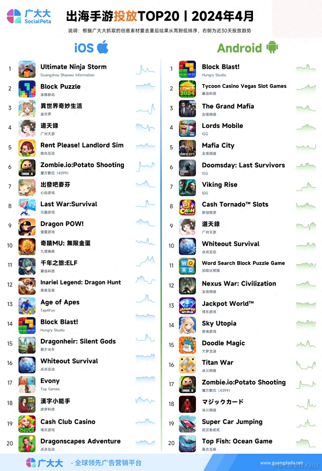 2024年4月出海成功手游投放TOP20榜单