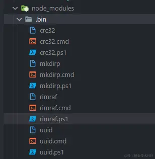 开发模式打包 : npx命令 可以将项目中的node_modules下的.bin 文件夹(如下随便截的图)临时加到环境变量中使我们可以用它的命令。否则需要配置全局的环境变量才能用。