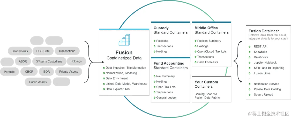 JP Morgan宣布推出面向机构投资者的容器化数据(Containerized Data)。新解决方案将通过JP Morgan富讯(Fusion)提供。这一端到端解决方案利用新的通用语义层,对跨多个提供商、来源、类型和结构的数据进行建模和规范化,为投资者提供跨业务服务的一致和丰富的数据。Fusion 对数据进行摄取、转换和链接,使其具有互操作性,并为人工智能和 ML 应用做好准备。投资者可以使用云原生渠道,包括 API、Jupyter 笔记本、Snowflake、Databricks 等,随时在一致的容器中访问数据。