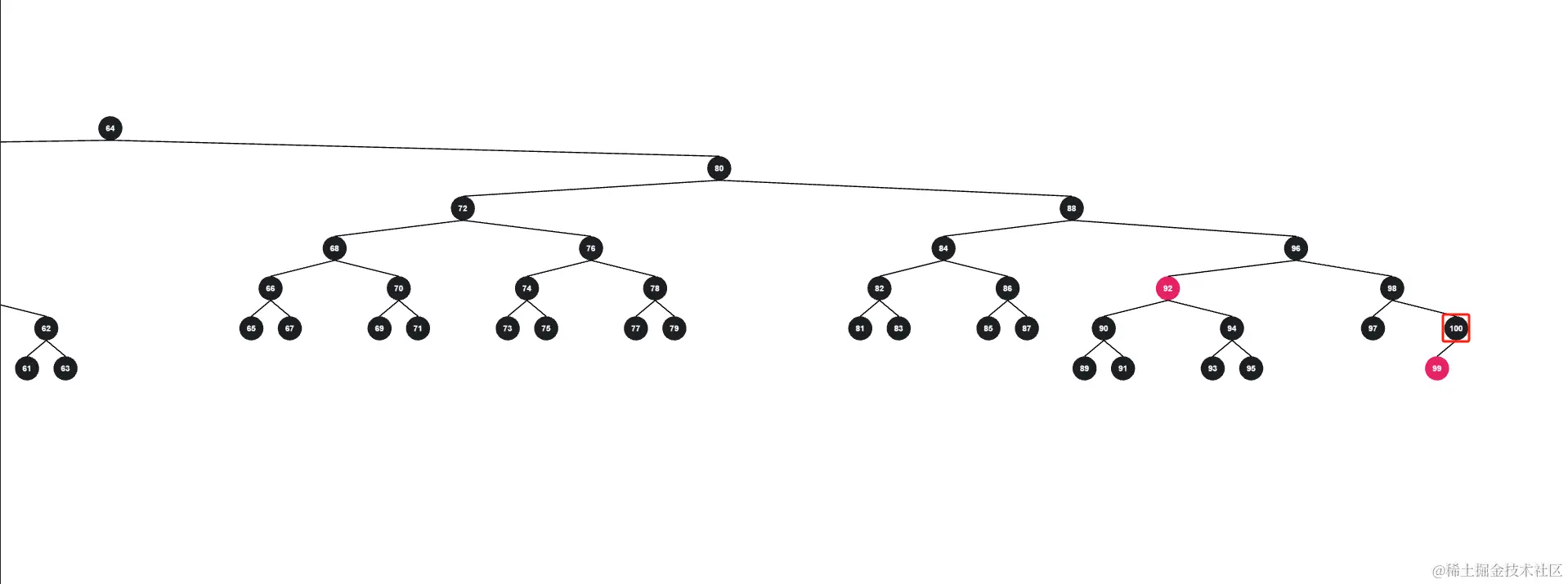 假如把1-100个树放到一维数组里,要找到100需要循环100次。如果是红黑树只需要循环6次就能找到目标。当然也可以对数组进行排序算法,比如二分查找啥的,也是有不错的效果,但是这里是用红黑树这种数据结构来替换数组结构。