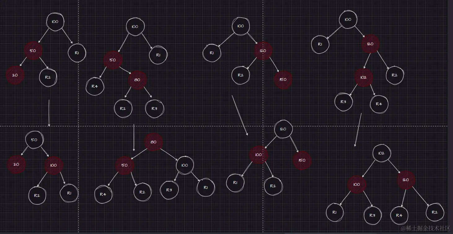 这里就是常说的左旋和右旋,说左旋右旋很多人会迷糊,我自己学的时候没管啥左右旋,只需要变换为上图的结构就行