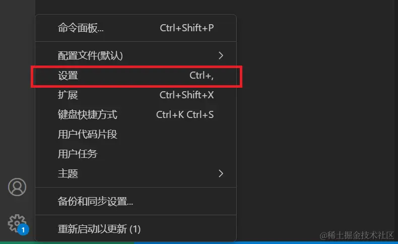 如果 VSCode 远程服务器 remote 无法连接外网时,请点击左下角⚙按钮,再点击设置: