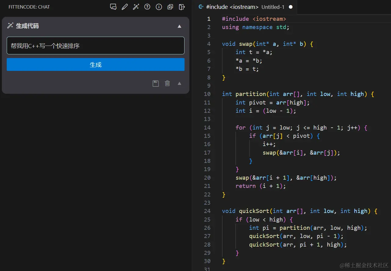 目前对于 C++ 语言,Fitten Code 支持在多种文本编辑器或 IDE 上使用,接下来我们来详细看看 VS Code 与 Visual Studio 两款 IDE 的安装与使用: