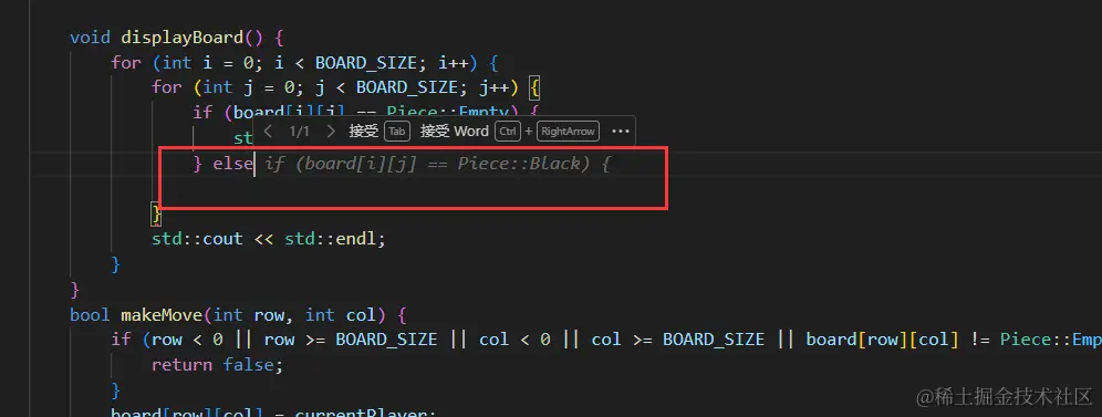 按下 Ctrl+→ 键(mac系统为Command+→)接收单个词补全建议: