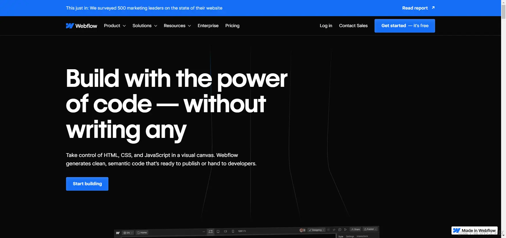 1)可视化编辑器:Webflow提供了一个直观的拖放界面,允许设计师在不编写代码的情况下设计复杂、响应式的网站。