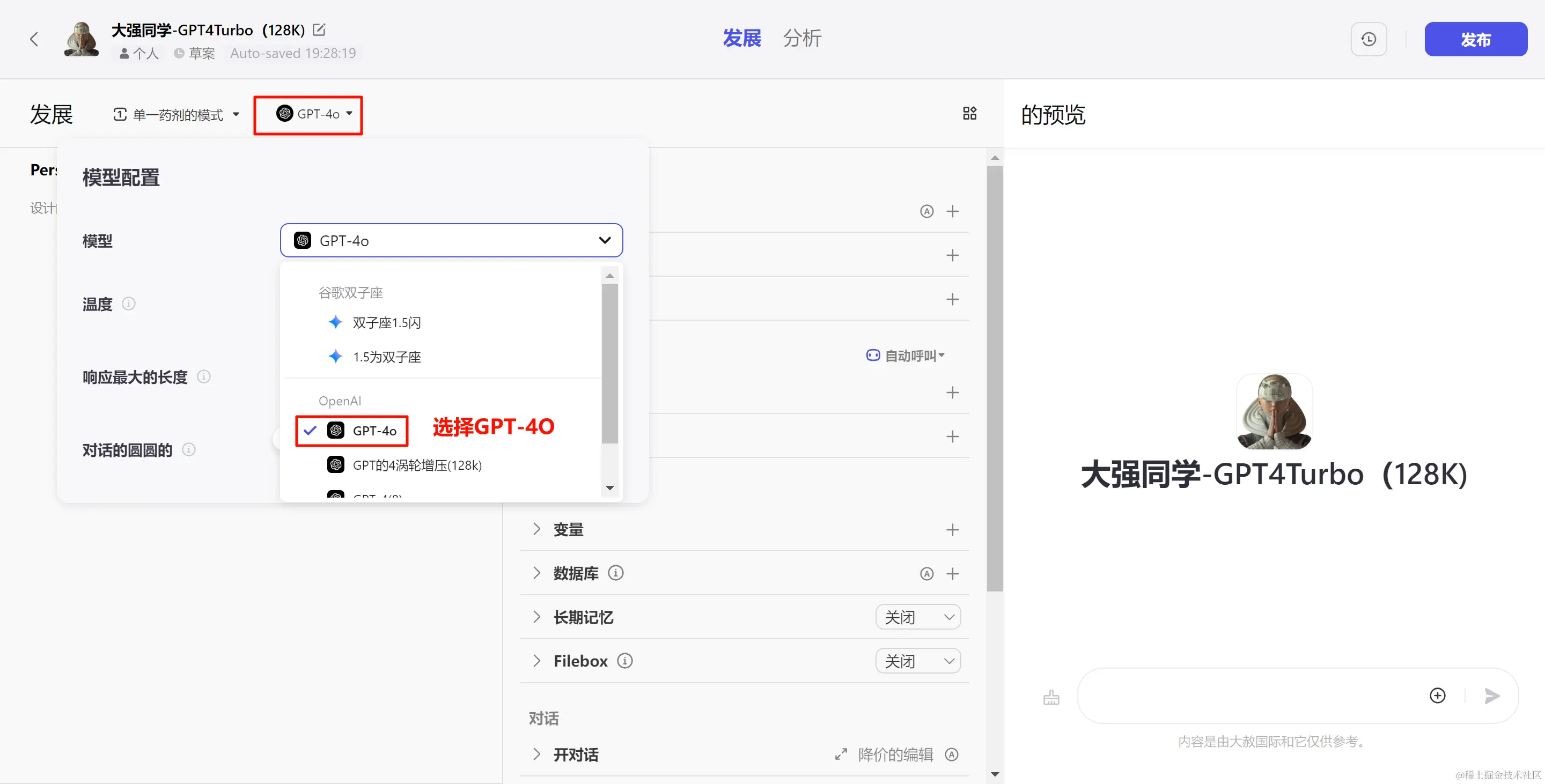 最后选择发布即可,下方体验地址,另外可以在我的discord社群@大强同学-GPT4O