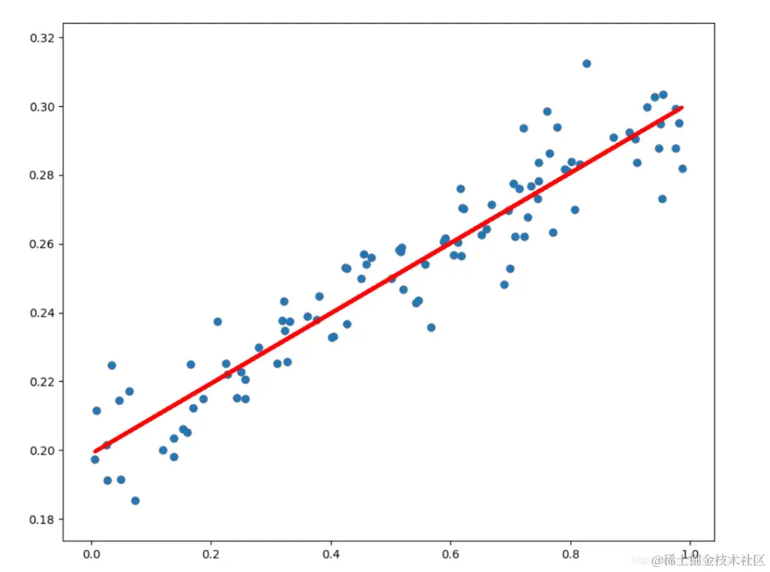 线性回归通过寻找数据点之间的最佳拟合直线,来预测目标变量。其数学模型为: