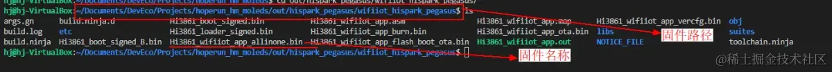 固件生成在对应工程目录的out/hispark_pegasus/wifiiot_hispark_pegasus/目录下。