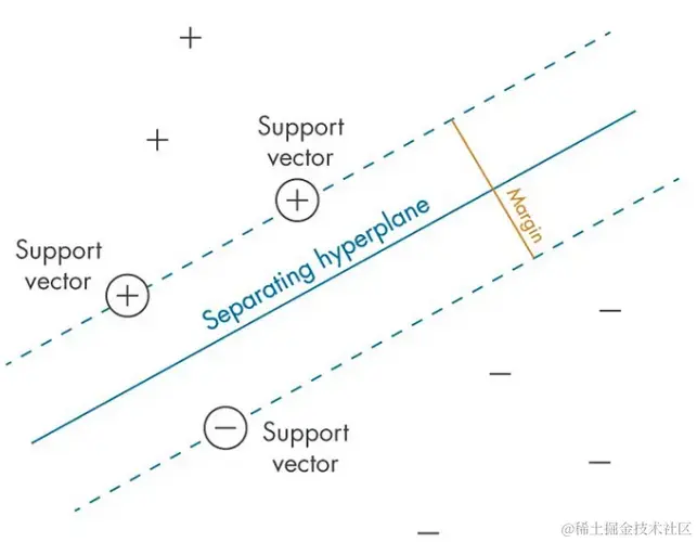 支持向量是那些位于间隔边缘的数据点,它们是 SVM 模型中最关键的部分。这些数据点支撑着超平面,决定了其位置和方向。如果从数据集中移除这些支持向量,超平面的位置将会发生改变,从而影响模型的分类能力。
