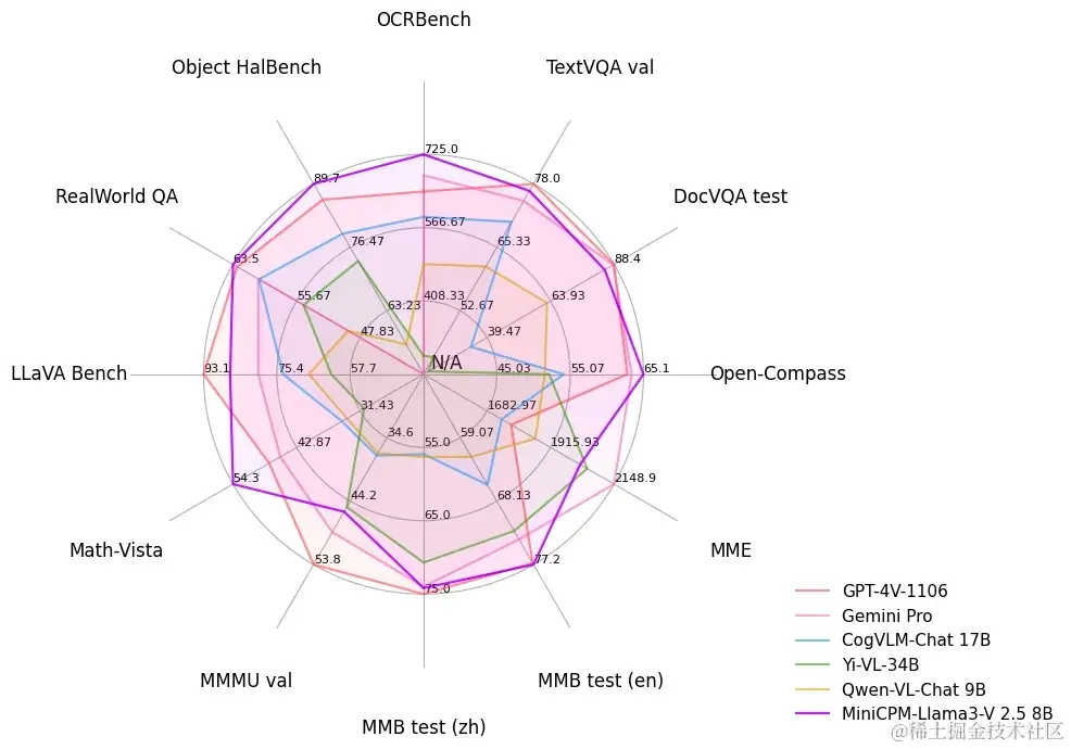 MiniCPM-Llama3-V 2.5 在多个方面展现出了优异的性能: