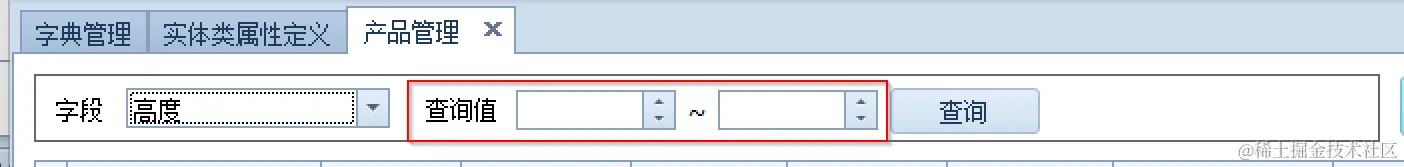 通过下拉列表的方式选择不同的字段进行查询,如果是数值型或者日期,我们可以根据不同类型来创建输入控件组,来实现区间数值或者日期的输入。
