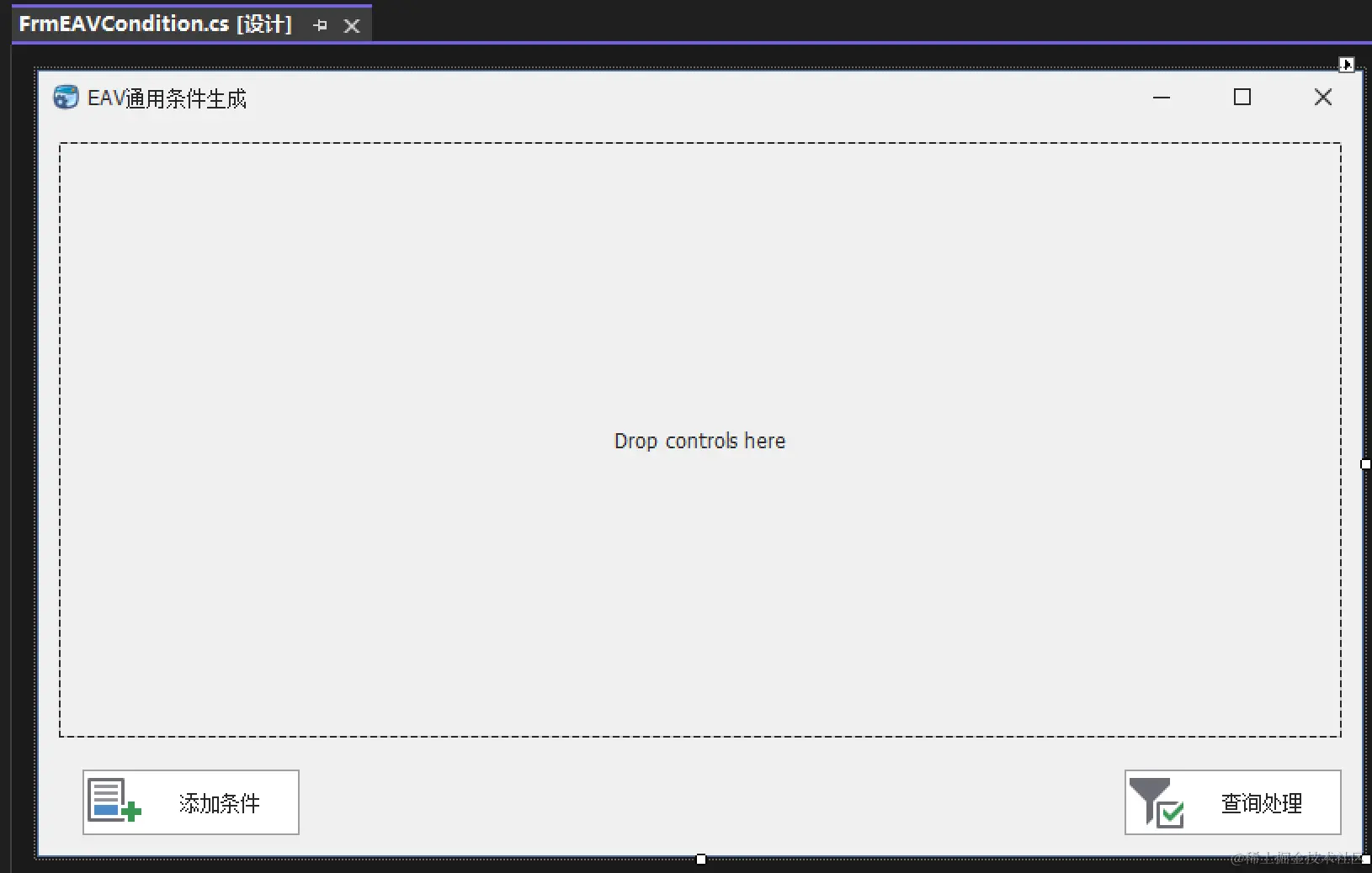 首先创建一个主窗体面板,来承载添加和显示多个条件以及触发查询的处理按钮,如下所示。