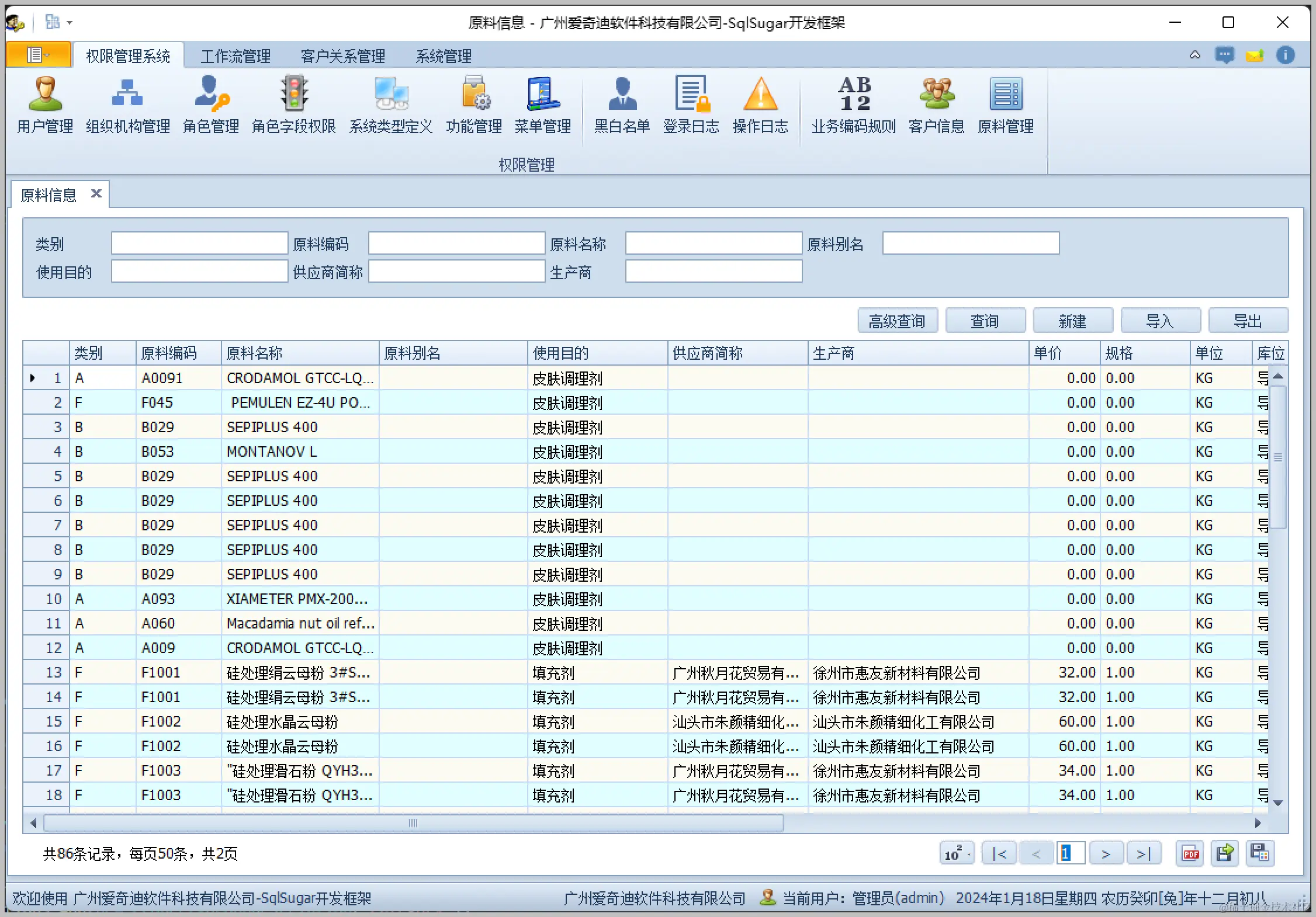 在一个页面模块中,列表界面往往是我们的入口界面,其中包含一些查询条件,数据展示,以及如新建、导入、导出、编辑等功能的入口,如下是我们常规的系统界面,使用固定的表字段来创建的常规化界面。
