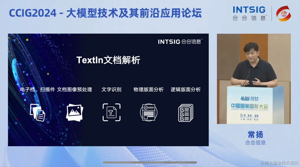 大模型一路“高歌猛进”的背后,隐藏着一场关于模型训练语料的“能源危机”。根据人工智能研究人员小组Epoch研究估计,机器学习数据集可能会在2026年前耗尽所有“高质量语言数据”。现阶段,大量的高质量语料数据存在于书籍、论文、研报、企业文档等文档之中,复杂的版面结构制约了大模型的训练语料处理及大模型文档问答的应用能力。文档解析技术的进步,让机器能够识别文档中的多种元素,更好地处理文本、表格、图像等多类型数据,还原文档阅读顺序,加速大模型训练与应用。论坛上,合合信息智能创新事业部研发总监常扬分享了合合信息智能文档处理技术在文档解析领域的工作,给与会者带来了新的技术视角。