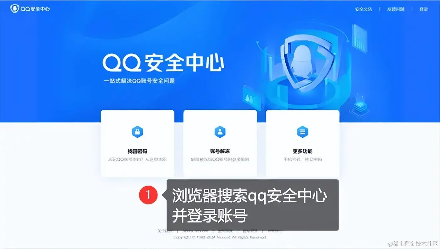 第一步:在浏览器中搜索 【QQ安全中心】 ,根据账号密码登录。